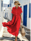 Dámské Midi šaty Letní šaty prázdniny Na běžné nošení Cikánský Denní Plážové Dovolená Volný Bez vzoru Krátký rukáv Klopa Vodní modrá Bílá Žlutá Světlá růžová Léto