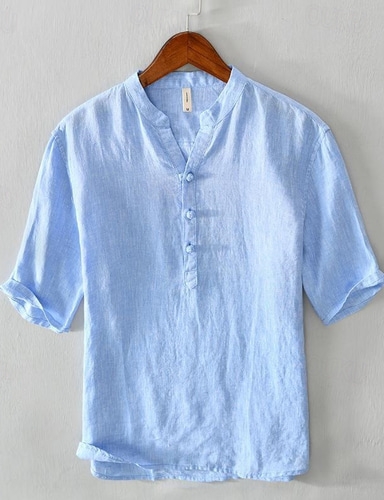 Pánské plátěná košile Bavlněná lněná košile Čínská košile s límečkem Košile s mandarinkovým límečkem Letní košile Plážová košile Bez vzoru Dovolená Havajské Černá Bílá Vodní modrá Tmavomodrá Krátk