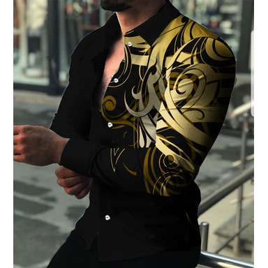 Pánské Geometriské vzory Geometrie Košile Košile na knoflíky Dlouhý rukáv Módní Šik ven Designové Denní Dovolená Jdeme ven Jaro léto Přehnutý 3D tisk Tlačítko dolů Vodní modrá Žlutá Světlá růžov