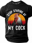 Pánské tričko s grafikou - vtipné pun černé kuře s krátkým rukávem - Přestaň zírat na mé kohouty
