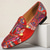 Červené kožené slip-on boty pro muže se zlatým špičkovým unikátním potiskem – Moderní západní boty pro každodenní nošení