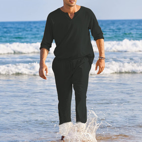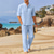 Pánské plátěná košile 2 kusy Sada košile Letní košile Odpovídající sady Plážová košile Bez vzoru Dovolená Curise Černá Bílá Vodní modrá Dlouhý rukáv Stojáček Jaro léto Oblečení