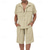 Pánské Košilové obleky Sady košil a kalhot 2 kusy oblečení Krátký rukáv Klopa Léto Bez vzoru Módní Na běžné nošení 2 ks Dovolená Denní nošení Jdeme ven Černá Bílá Khaki Top tričko pro muže