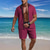Pánské 2 kusy Letní košile Odpovídající sady Oblečení na pláž Košile pro volný čas Košile na knoflíky Černá Bílá Světlá růžová Rubínově červená Tmavě námořnická Krátký rukáv Bez vzoru Pruhy / vlnění
