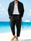 Pánské Košile s páskovým límečkem 2 kusy Sada košile Letní sada Odpovídající sady Oblečení na pláž Černá Bílá Šedá Poloviční rukáv Jednobarevné Límeček Venkovní ulice Šňůrky Oblečení Polyester