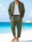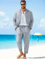 Pánské 2 kusy Sada košile Odpovídající sady Košile pro volný čas Bez vzoru Denní Jdeme ven Černá Světle šedá Armádní zelená Tmavě šedá Dlouhý rukáv Bez límce Jaro léto Oblečení Elastický pas