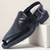 pánské černé rybářské sandály z umělé kůže s páskem na přezku a výřezem, stylové a pohodlné pro běžné nošení, outdoorové a letní nošení