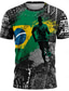 Fotbalový pohár 2026 pánské tričko s brazilskou vlajkou, postříkáním, siluetou fotbalisty, celoplošným potiskem, kulatým výstřihem, streetwear, den zápasu, oblečení pro fanoušky národního týmu,