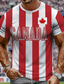 Fotbalový pohár Kanady 2026, národní tým, červené a bílé svislé pruhy, nápis Kanada, ležérní pánské tričko s krátkým rukávem, celoplošný potisk, fit, oblečení pro fanoušky na zápas, značkové oblečení,