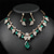 Sada šperků 2ks zelený kubický zirkon chromový imitace diamantu 1 náhrdelník náušnice ženské elegantní vintage módní vintage styl klasická sada šperků pro svatební párty