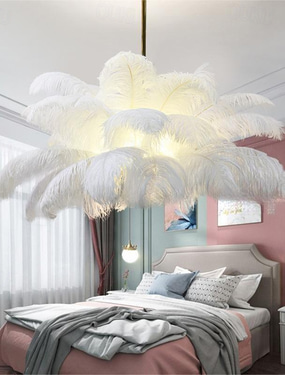 led závěsné světlo lustr nádherný extra velký 80cm 1-světlo bílé kytice z pštrosího peří závěsné světlo romantické namontované svítidlo pro restauraci ložnice