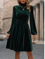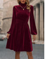 Dámské Mini šaty Vánoční šaty Sametové šaty Koktejlky Áčkové šaty Na běžné nošení Večerní oslava Párty ulice Běžný Bez vzoru Dlouhý rukáv Rolák Černá Fialová Trávová zelená Podzim Zima