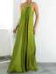 Dámské Dlouhé šaty Maxi šaty Saténové šaty Volnočasové šaty Letní šaty Šaty s ohlávkou ke krku Módní Venkovní Dovolená Rande Běžný Bez vzoru Bez rukávů Krk ohlávky Vodní modrá Světle zelená Oranžová