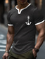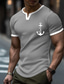 Pánské rodinné tričko s kotvou, námořnickým potiskem, henley výstřihem do V, slim fit, muscle fit, texturovaná vaflová tkanina, léto, pláž, plavba, dovolená, značkové oblečení, velikost S M L XL XXL