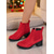 Dámské červené vánoční vojenské boty - trendy sváteční šněrovací boty pro ženy - ideální na Štědrý den, zimní módu a ležérní eleganci