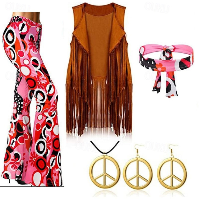Retro 60. léta Hippie Kalhoty Cosplay kostým Úbory Hippie Disko Třásně Maškarní kostým Dámské Dívčí předvečer Všech svatých Karneval Plesová maškaráda Pride Parade Měsíc hrdosti Dospělé Vesta Kalhoty