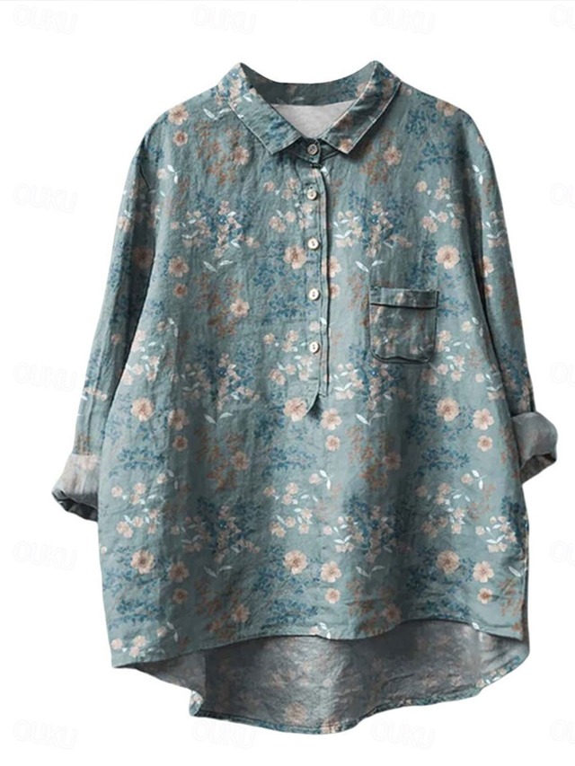 Dámské Košile Imitace bavlny a lnu Dlouhý rukáv Košilový límec Vodní modrá Bílá Trávová zelená Jaro & podzim