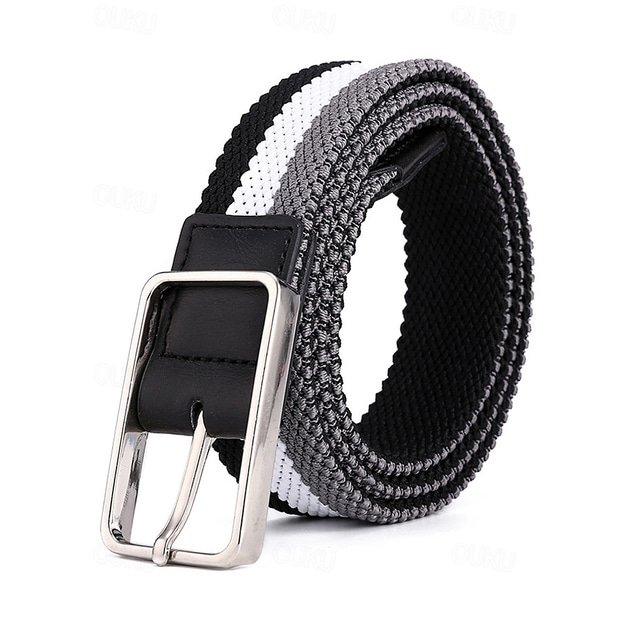 Pánský pruhovaný elastický tkaný pásek se stříbrnou přezkou, ležérní strečový pásek pro pohodlí, dostupný v několika barevných variantách, perfektní vánoční dárek