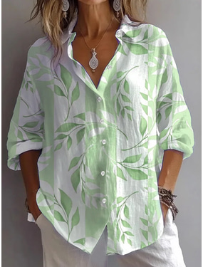 Damenhemd Leinenartig Atmungsaktiv Leicht Knopfdown Tunika Hemd Kragen Langarm Floral Grafik Täglich Stilvoll Lässig Reguläre Tops Täglich Urlaub Druck Gelb Blau Lila Grün Frühling