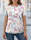 Damen T-Shirt 3D Druck Floral Grafik Pflanzen Vintage Stylisch Klassisch Kurzarm Rundhalsausschnitt Reguläre Oberteile Täglich Druck Pink Khaki Hellblau Sommer