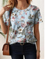Damen T-Shirt Basic Blumendruck Kurzarm Normale Oberteile V-Ausschnitt Casual Urlaub Wochenende Blau Lila Grün