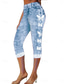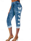 Damen Leggings Capri Hosen hohe Elastizität Urlaub Vintage Mode knielang hohe Taille floraler Grafikdruck atmungsaktiv weich dehnbar formell Urlaub Büro Robin-Ei blau weiß