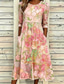 Damen Midikleid Shiftkleid Urlaub Lässig Boho Täglich Sommerkleid Frühlingskleid Normale Passform Blumen Grafik Halbarm Rundhalsausschnitt Rosa Himmelblau Beige Sommer Frühling