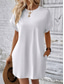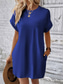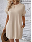 Damen Casual kleid Minikleid Tasche Brautkleider schlicht Rundhalsausschnitt Kurzarm Weiß Blau Khaki Farbe