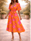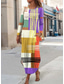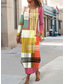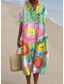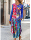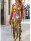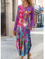 Damen Maxikleid Sommerkleid Urlaub Lässig Boho Täglich Lässiger Schnitt Grafik Farbblock Ethnisch Langarm V Ausschnitt Rosa Orange Grün Hell Orange Sommer Frühling