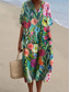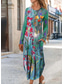 Damen Midikleid A Linie Kleid Figurbetontes Kleid Lässig Boho Täglich Hochzeitsgast Ausgehen Lässiger Schnitt Blumen Grafik Geometrisch Langarm V Ausschnitt Hellgrün Rosa Violett Frühling Herbst