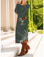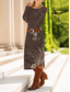 Damen Midikleid Etui-Kleid Shiftkleid Party Lässig Boho Party Hochzeitsgast Täglich Normale Passform Grafik Paisley-Muster Stammes Langarm Rundhalsausschnitt Dunkelgrau Frühling Herbst Winter