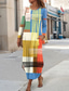 Damen Midikleid Etui-Kleid T-Shirt-Kleid Urlaub Lässig Boho Ferien Date Normale Passform Grafik Geometrisch Abstrakt Langarm Rundhalsausschnitt Gelb Rosa Blau Purpur Frühling Herbst Winter