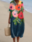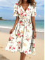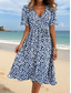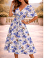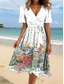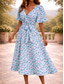 Damen Midikleid A Linie Kleid Urlaub Lässig Ferien Date Normale Passform Blumen Grafik Halbarm V Ausschnitt Blau Weiß Beige Sommer Frühling Herbst Winter
