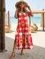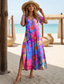 Damen Maxikleid A Linie Kleid Urlaub Lässig Strand Täglich Normale Passform Blumen Grafik Ärmellos Rundhalsausschnitt Rote Sommer Frühling