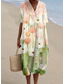 Damen Midikleid Shiftkleid Sommerkleid Urlaub Lässig Strand Täglich Ausgehen Lässiger Schnitt Ombre Blumen Grafik Kurzarm V Ausschnitt Champagner Hellgrün Grün Beige Sommer Frühling