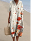 Damen Midikleid A Linie Kleid Lässig Täglich Normale Passform Blumen Abstrakt Kurzarm V Ausschnitt Weiß Purpur Orange Braun Sommer Frühling