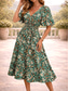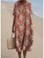 Damen Midikleid Sommerkleid Faltenkleid Urlaub Lässig Ferien Lässiger Schnitt Blumen Grafik Kurzarm Rundhalsausschnitt Rote Grün Sommer