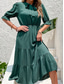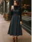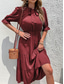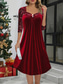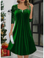 Weihnachts Midi Kleid für Damen A-Linie Kleid Casual Semi Formal Feiertags Reguläre Passform Einfarbig 3/4 Länge Ärmel Quadrat-Ausschnitt Weinrot Grün Winter