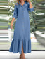 Damen Jeanskleider blusenkleid Maxikleid B¨¹ro Urlaub Denim Basic Modern V Ausschnitt Taste Halbe Ärmel Sommer Frühling Regular Fit Glatt