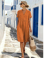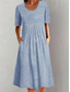 Damen Baumwoll-Leinen-Midikleid A-Linien-Kleid Sommerkleid Casual Daily Regular Fit Einfarbig Halbarm Rundhalsausschnitt Weiß Blau Lila Grün Sommer