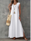 Damen Maxikleid A Linie Kleid Sommerkleid Lässig Täglich Lässiger Schnitt Einfach Ärmellos V Ausschnitt Schwarz Rote Blau Aprikose Sommer