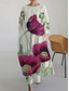 Damen Maxikleid Shiftkleid Lässig Täglich Ausgehen Lässiger Schnitt Blumen Grafik Langarm V Ausschnitt Dunkelpink Purpur Orange Beige Sommer Frühling