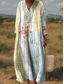 Maxikleid aus Baumwolle und Leinen, lässig, ideal für Sommer, Urlaub, Party, Freizeit, Büro, Strand, mit grafischem, geometrischem Muster, halblangen Ärmeln und V-Ausschnitt, in Blau, Schwarz, Weiß,
