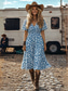Damen Midikleid Sommerkleid A Linie Kleid Urlaub Lässig Cocktail Täglich Strand Geburtstag Normale Passform Blumen Grafik Ärmellos Rundhalsausschnitt Blau Weiß Himmelblau Grün Sommer