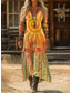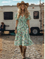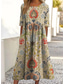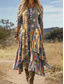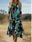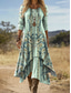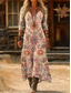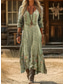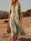 Damen Midikleid Druckkleid Mode Outdoor Wochenende Normale Passform Blume Langarm V Ausschnitt Khaki Sommer