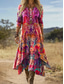 Damen Midikleid Sommerkleid Faltenkleid Urlaub Lässig Ferien Lässiger Schnitt Blumen Grafik Kurzarm Rundhalsausschnitt Rote Grün Sommer