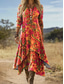 Damen Maxikleid A Linie Kleid Urlaub Lässig Strand Täglich Normale Passform Blumen Grafik Ärmellos Rundhalsausschnitt Rote Sommer Frühling