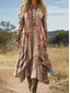 Damen Maxikleid Etui-Kleid A Linie Kleid Lässig Boho Hochzeitsgast Täglich Ausgehen Normale Passform Blumen Grafik Langarm Rundhalsausschnitt Braun Frühling Herbst Winter