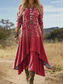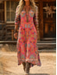 Damen Midi Kleid Boho Shift Kleid Urlaub Lässig Täglich Feiertag Reguläre Passform Grafisch Geometrisch Langarm Rundhals V-Ausschnitt Schwarz Rot Orange Dunkelblau Sommer Frühling Herbst