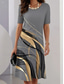 Damen Knielanges Kleid Chiffonkleid Sommerkleid Druckkleid Mode Streetwear Reifen Outdoor Urlaub Täglich Normale Passform Blumen Kurzarm Rundhalsausschnitt Grau Sommer Frühling